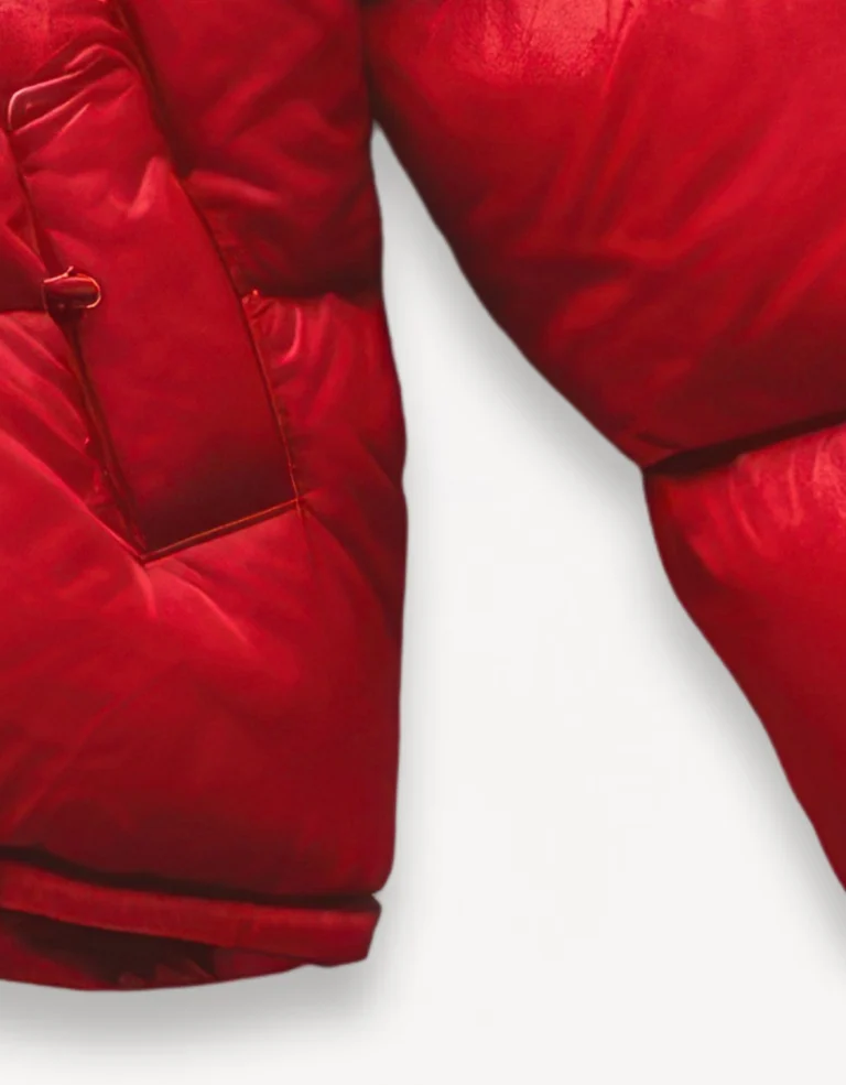 Red puffer jacket