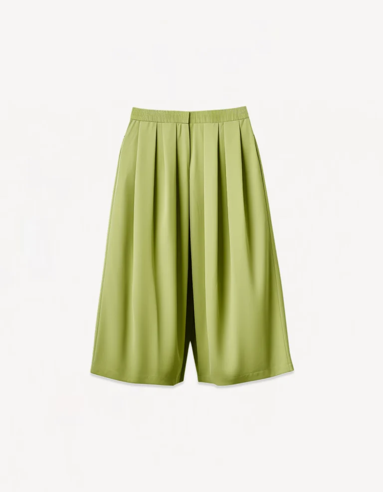 These pleated culottes offer a relaxed and airy feel with their wide-leg design and elastic waistband. Perfect for effortless styling, they provide comfort and elegance for both casual and chic outfits.