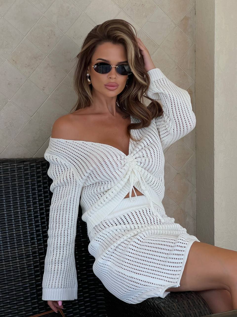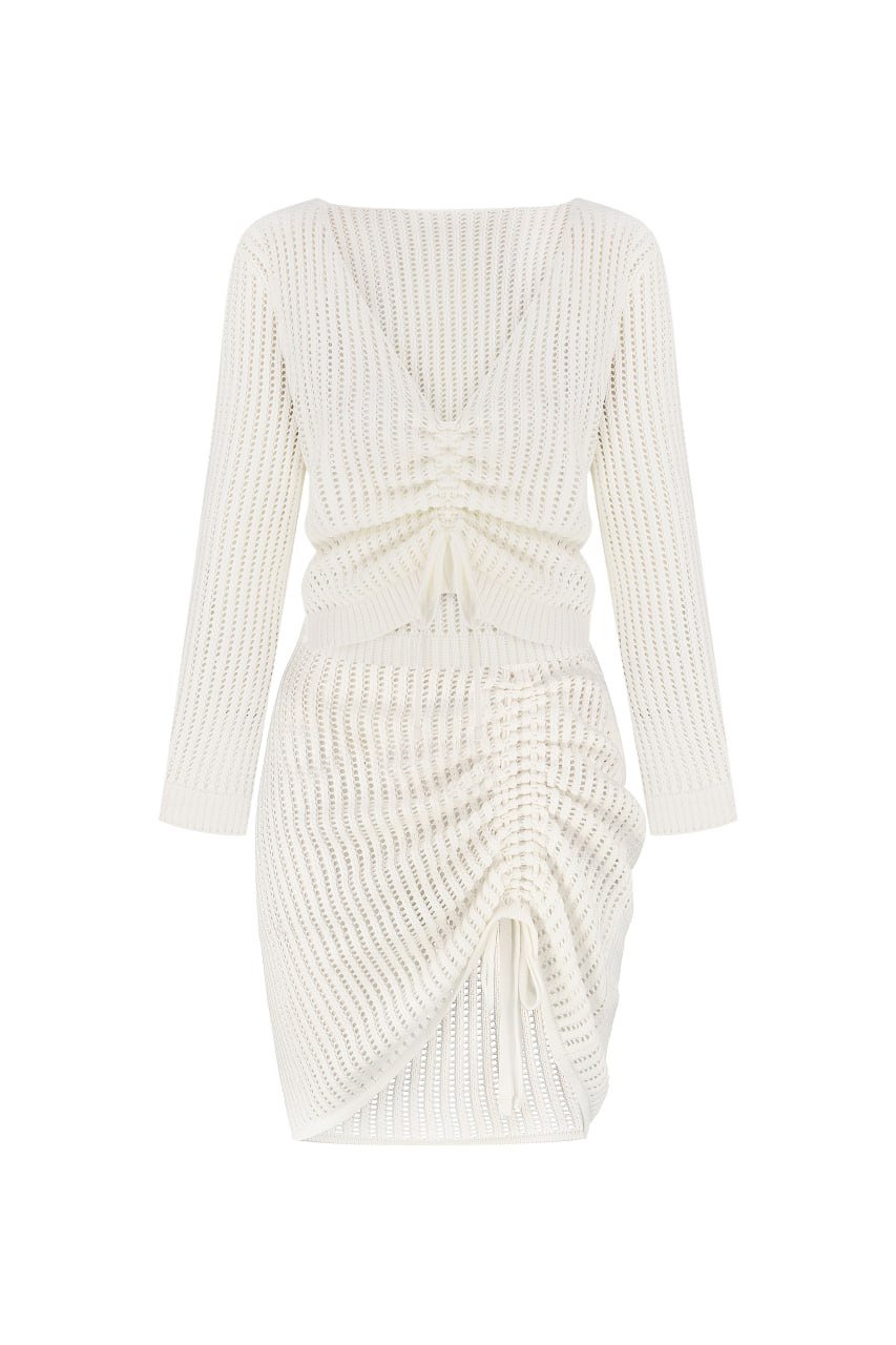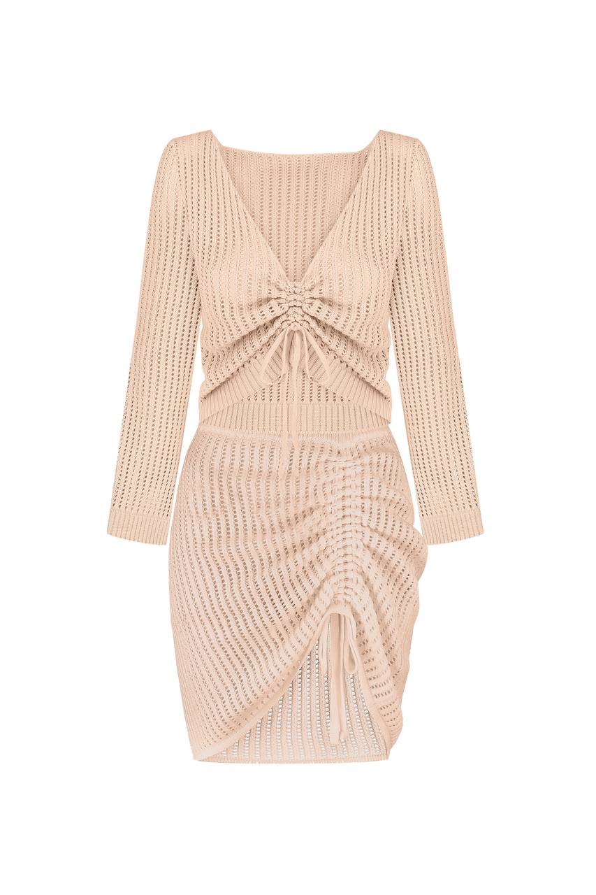 A knitted suit with adjusters is a stylish and practical choice for those who value comfort and functionality in their wardrobe. The set consists of a cropped top and shorts equipped with adjusters that allow you to individually adjust the fit for maximum comfort. Soft knitted fabric provides a pleasant feeling on the skin and comfort even on hot days.